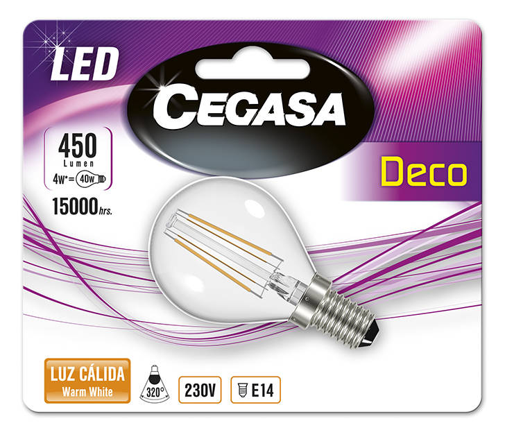 LMP CEGASA LED FIL ESFERICA 4W E14 BL1 CALIDA