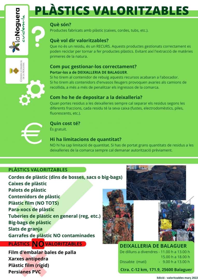 Així doncs, des de l’Ajuntament de Cubells recordem que tots aquests productes fabricats amb plàstic es poden portar de forma gratuïta a la deixalleria de Balaguer, de dilluns a divendres de 11 a 13 hores i de 15 a 18 hores, i dissabtes de 9 a 13 hores.