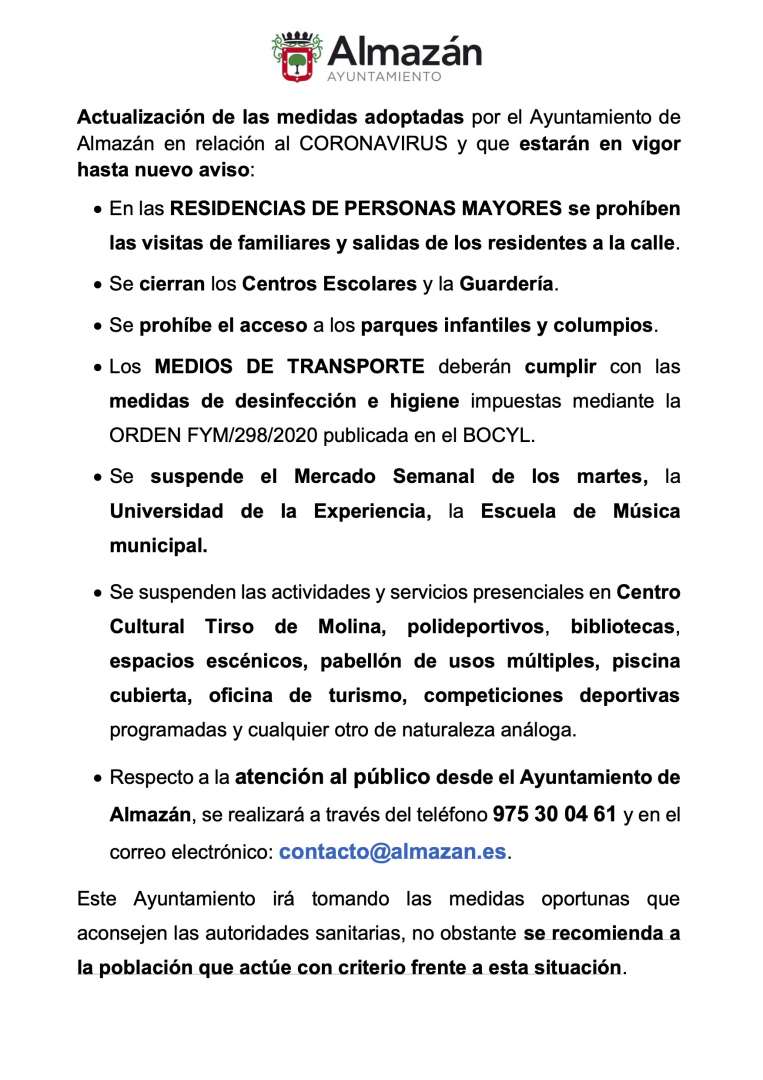 ACTUALIZACIÓN DE LAS MEDIDAS PREVENTIVAS TOMADAS POR EL AYUNTAMIENTO FRENTE AL CORONAVIRUS