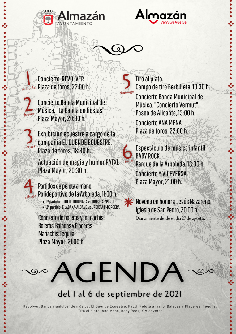 AGENDA DEL 1 AL 6 DE SEPTIEMBRE