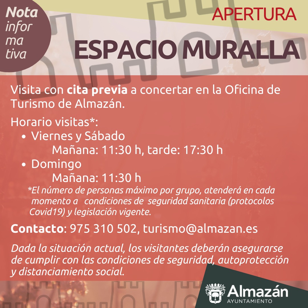 Visita con cita previa a concertar con la Oficina de Turismo de Almazán en el teléfono 975310502 o por e-mail [email protected]