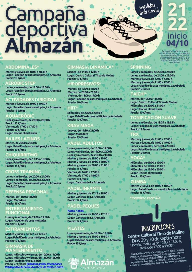 Inscripciones en el Centro Cultural Tirso de Molina los días 29 y 30 de septiembre en horario de 10 a 13 h. y de 17 a 19 h. Comienzo de las actividades el 4 de octubre.