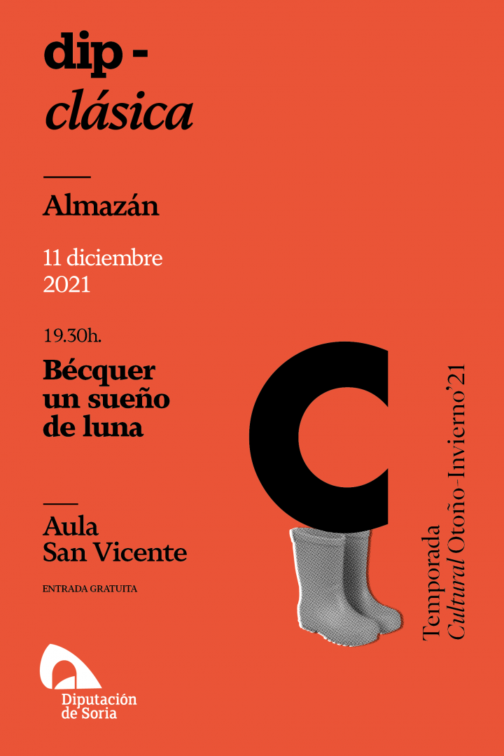 Tendrá lugar el sábado 11 de diciembre a las 19:30 h. en el Aula de Cultura San Vicente. Es una actividad de la Temporada Cultural de Otoño-Invierno de 2021 de Diputación Provincial de Soria.