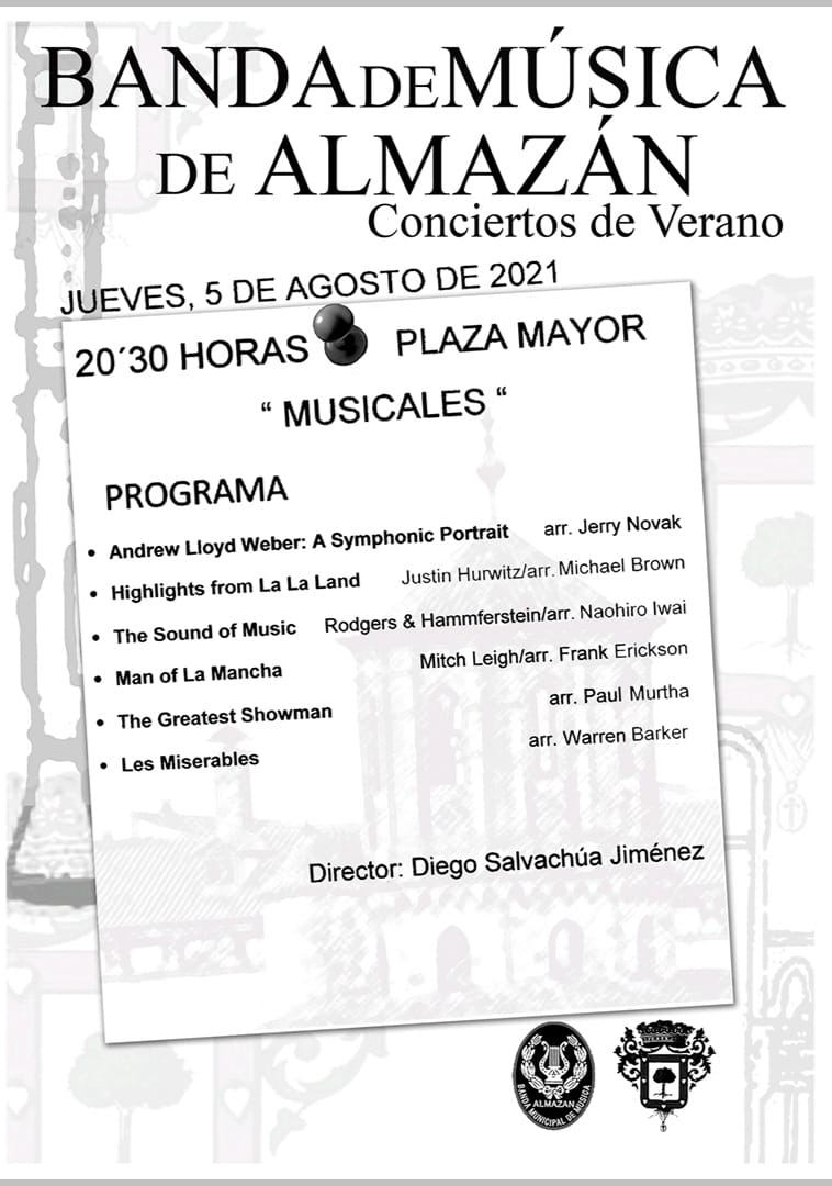 Este jueves, 5 de Agosto, a las 20:30 h. en la Plaza Mayor la Banda nos deleitará con "Musicales"