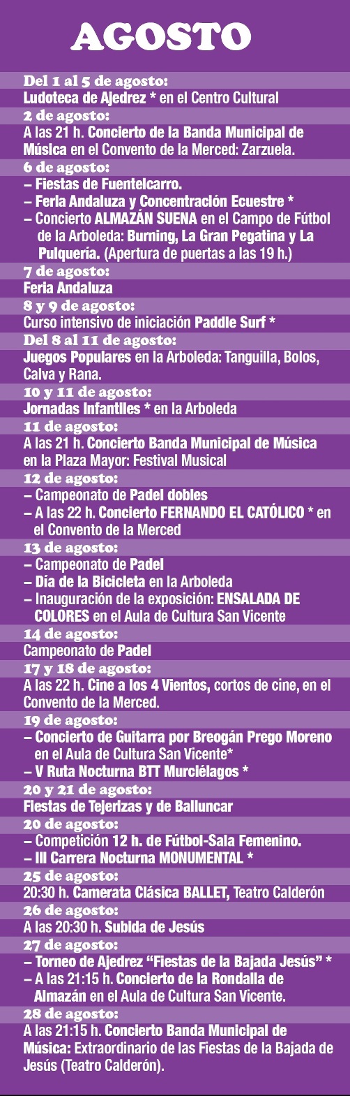 Puedes descargarte el Cultural Verano Almazán 2016 en este enlace: Cultural verano Almazán 2016.pdf