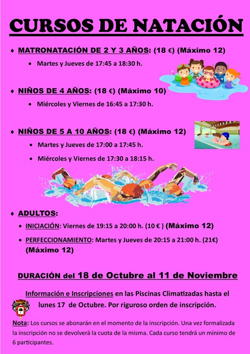 Del 18 de octubre al 11 de noviembre. Inscripciones en la Piscina Climatizada hasta el 17 de octubre. Consulta aquí los horarios.