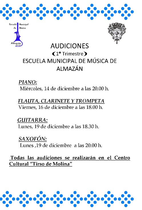 Escuela Municipal de Música: AUDICIONES PRIMER TRIMESTRE Curso 2016-2017