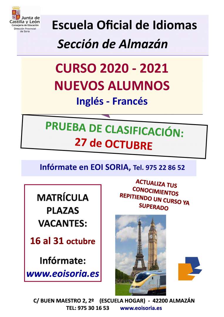 ESCUELA OFICIAL DE IDIOMAS ALMAZÁN CURSO 2020-2021 - MATRICULACIÓN NUEVOS ALUMNOS INGLÉS, FRANCÉS