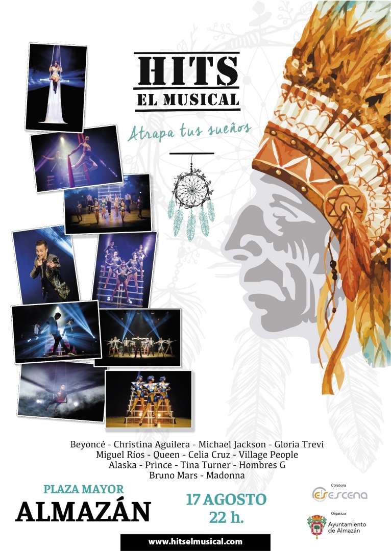 Viernes 17 de agosto a las 22 h. en la Plaza Mayor, espectáculo HITS EL MUSICAL, con canciones de BEYONCÉ, CRISTINA AGUILERA, MICHAEL JACKSON, GLORIA TREVI, MIGUEL RIOS, QUEEN, MADONNA, ALASKA, ...