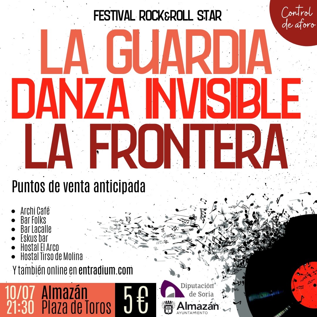 FESTIVAL ROCK&ROLL STAR: LA GUARDIA, DANZA INVISIBLE Y LA FRONTERA. Sábado 10 de Julio a las 21:30 h. en la Plaza de Toros.