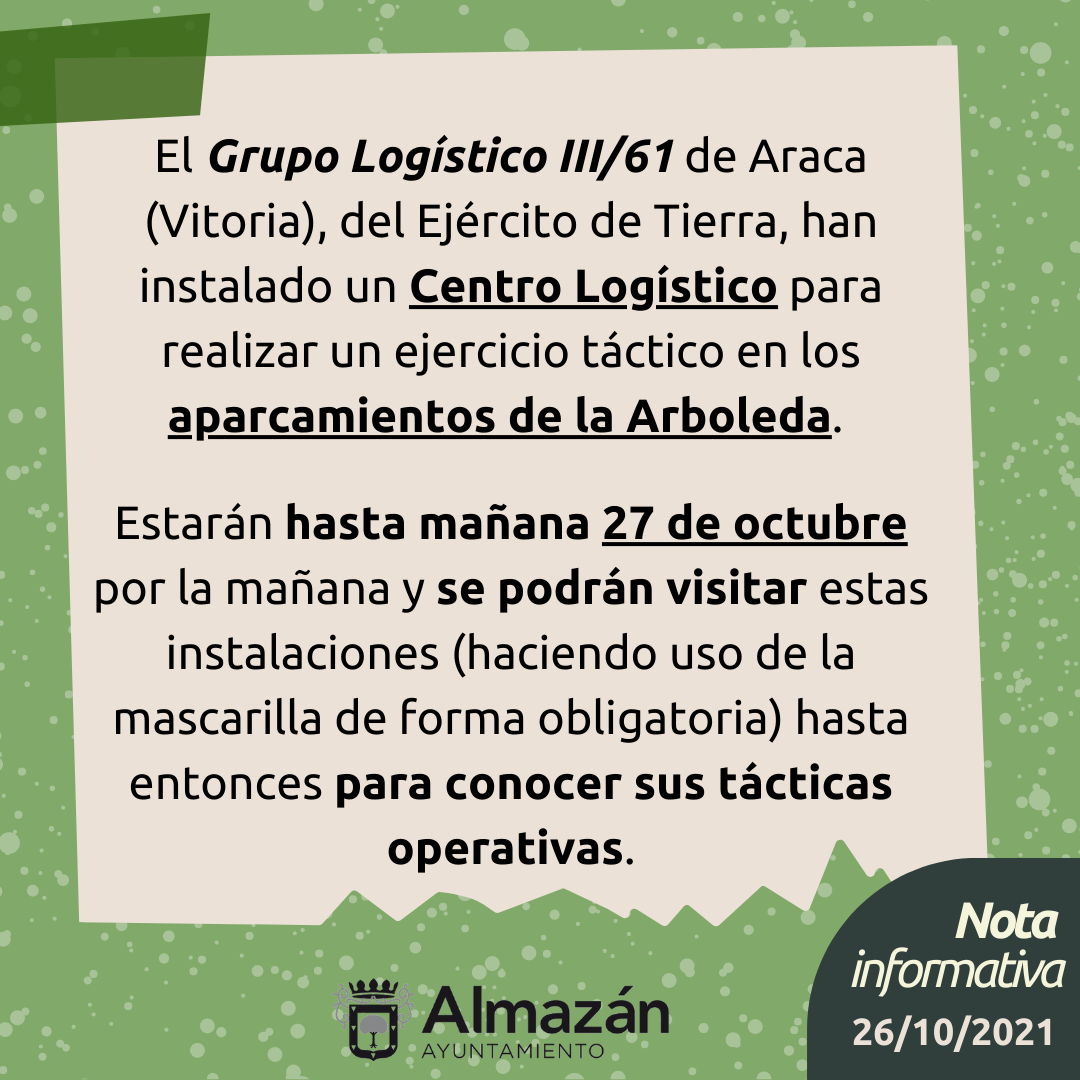 Hasta mañana, 27 de octubre, se puede visitar en el aparcamiento de la Arboleda el Centro Logístico del Grupo III/61 del Ejército de Tierra