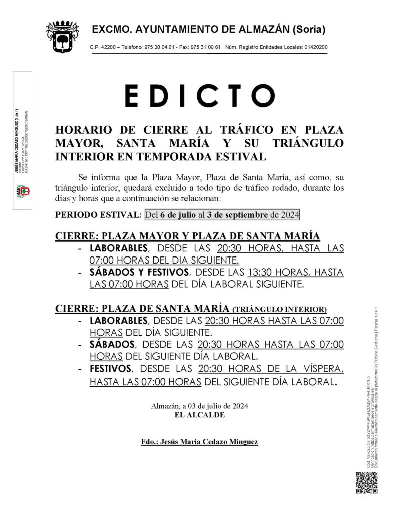 Horario de cierre al tráfico en Plaza Mayor, Santa María y su triángulo interior en la temporada estival