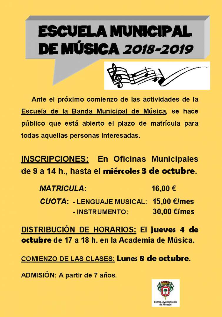 Las inscripciones se podrán hacer hasta el miércoles 3 de octubre en las Oficinas del Ayuntamiento, de 9 a 14 h. de lunes a viernes. Las clases comenzarán el lunes 8 de Octubre.