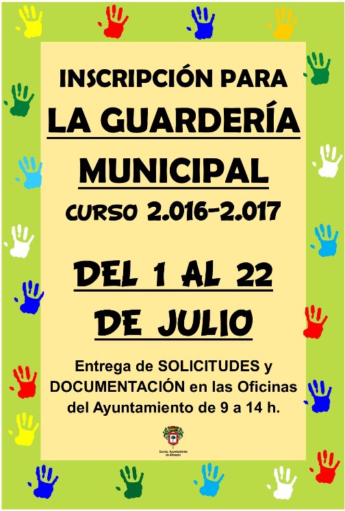 INSCRIPCIONES GUARDERÍA MUNICIPAL CURSO 2016-2017