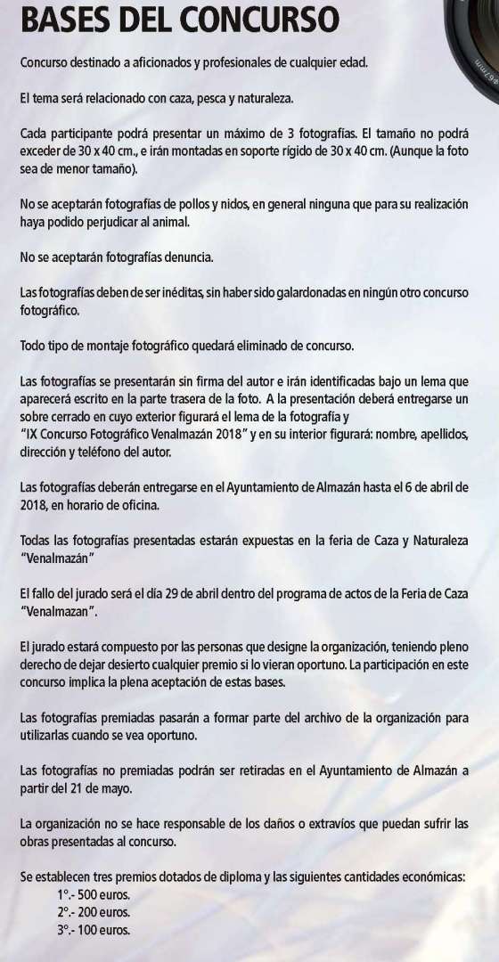 IX CONCURSO DE FOTOGRAFÍA - VENALMAZÁN 2018 - CAZA, PESCA Y NATURALEZA.