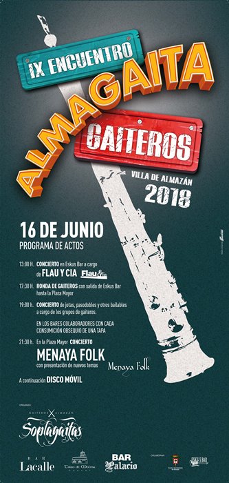 Organizan los gaiteros de Almazán Soplagaitas, con colaboración de bar Lacalle, hostal Tirso de Molina, bar Palacio, Ayuntamiento de Almazán y bar Eskus.