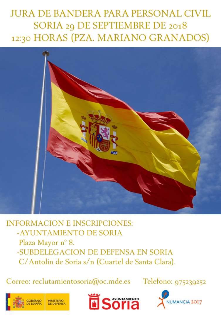 El Acto de la Jura de Bandera de personal civil se celebrará el próximo día 29 de Septiembre en la Plaza Mariano Granados de Soria a las 12:30 h.