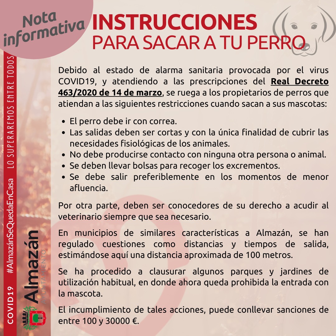 Nota Informativa COVID19: INSTRUCCIONES PARA SACAR A TU PERRO