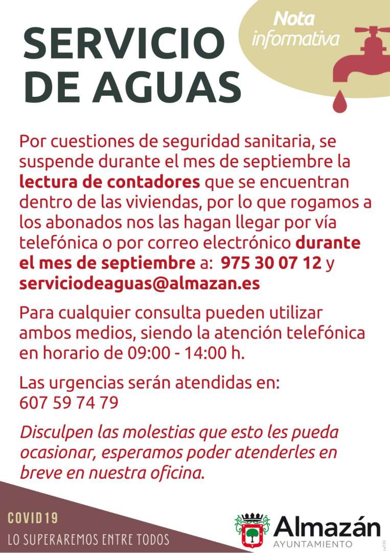 Se ruega a los abonados hagan llegar las lecturas durante septiembre a: 975300712 y [email protected]