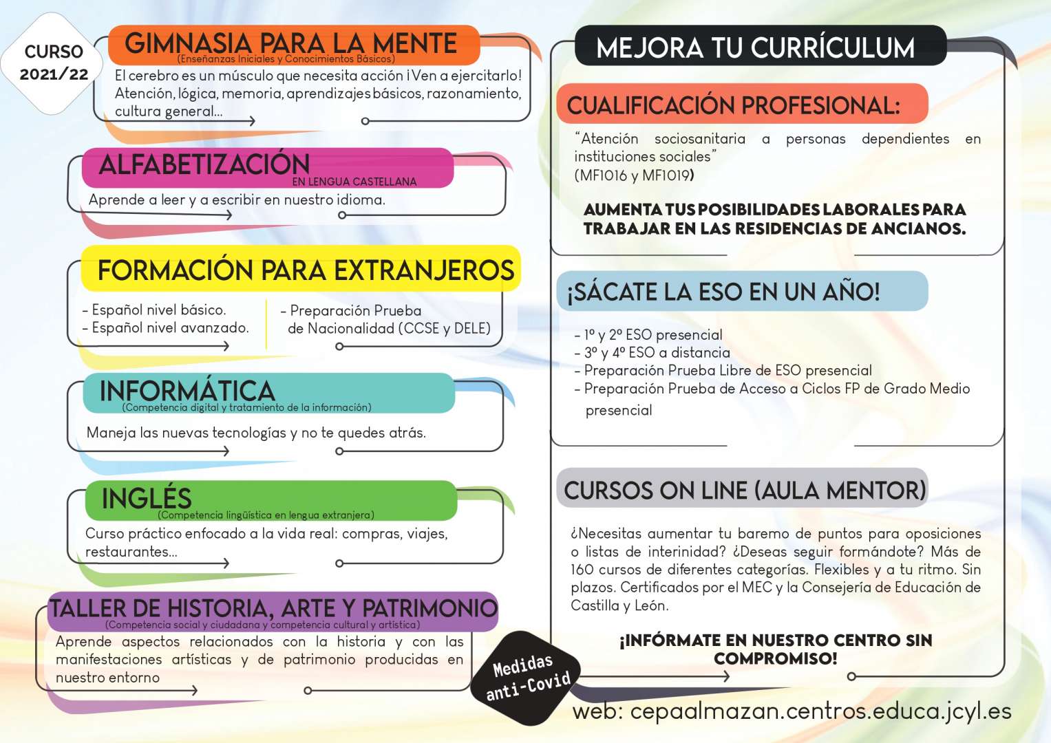 Oferta formativa del Centro de Educación para Adultos de Almazán, curso 2021/22