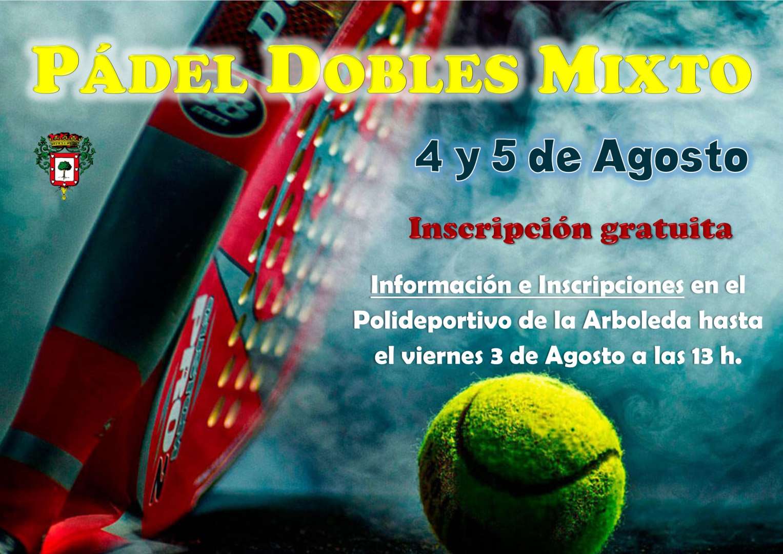 La competición será sábado 4 y domingo 5 de Agosto. Información e inscripciones hasta el viernes 3 de agosto a las 13 h. en el Polideportivo de la Arboleda.