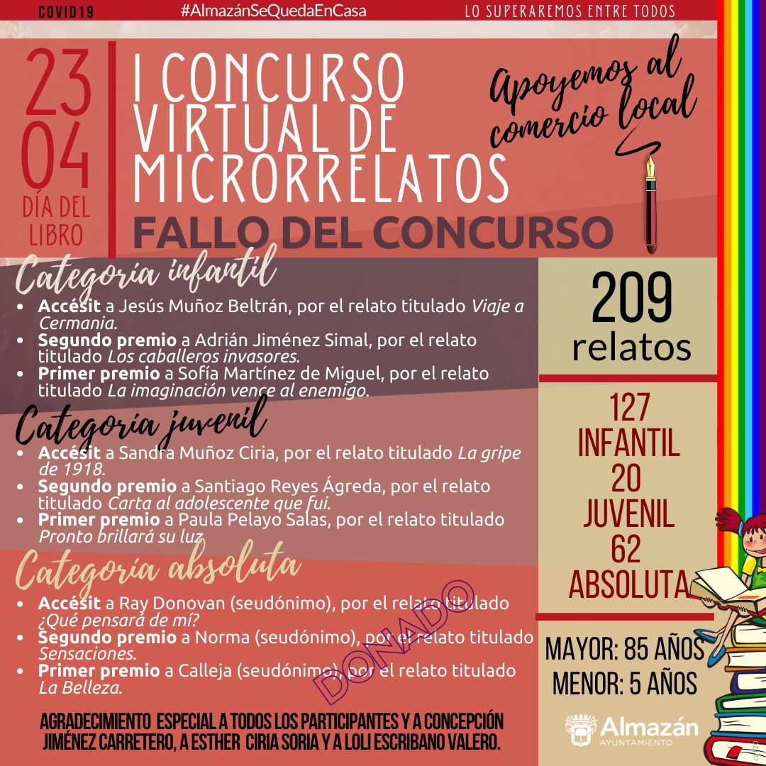 PREMIADOS DEL I CONCURSO VIRTUAL DE MICRORRELATOS - ALMAZÁN 23 DE ABRIL DE 2020