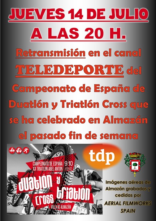 Este jueves, 14 de julio, a las 20 h. en el Canal TELEDEPORTE se retransmitirá un programa sobre el Campeonato de España de Duatlón y Triatlón Cross celebrado el pasado fin de semana en Almazán