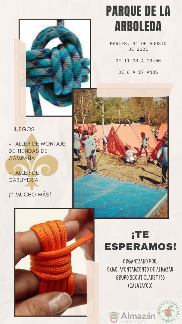 El martes 31 de agosto de 11 a 13 h. en la Arboleda de 6 a 17 años. Acercarté ese día directamente a la Arboleda (por la zona de los columpios) y ¡¡diviértete!!