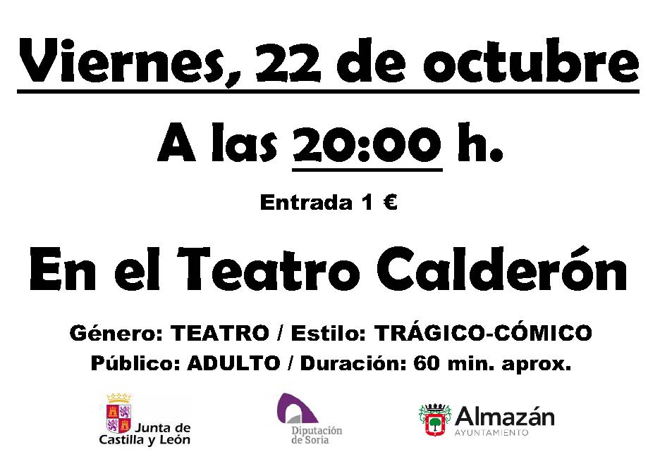 La representación de EL ABUELO será el viernes 22 de octubre de 2021 a las 20:00 h. en el Teatro Calderón. Precio de la entrada 1€. Espectáculo programado dentro de los Circuitos Escénicos de Castilla y León 2021, una colaboración entre la Junta de Castilla y León, Diputación Provincial de Soria y el Ayuntamiento de Almazán.
