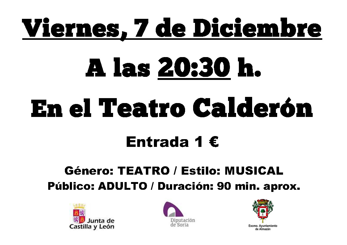 Viernes 7 de diciembre a las 20:30 h. en el Teatro Calderón, programado dentro de los Circuitos Escénicos de Castilla y León 2018. Precio de la entrada 1 €.
