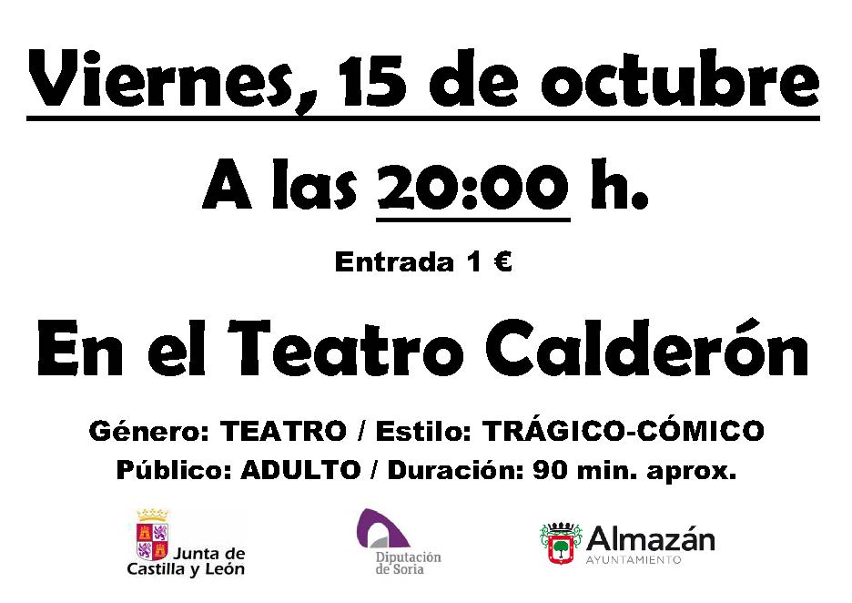 La representación de EL VIAJE DE CHARLIE será el viernes 15 de octubre de 2021 a las 20:00 h. en el Teatro Calderón. Precio de la entrada 1€. Espectáculo programado dentro de los Circuitos Escénicos de Castilla y León 2021, una colaboración entre la Junta de Castilla y León, Diputación Provincial de Soria y el Ayuntamiento de Almazán.