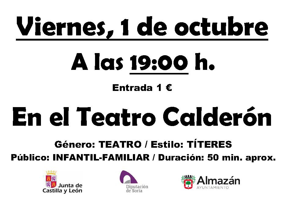 Este viernes 1 de octubre comienza la programación de Circuitos Escénicos con esta obra para nuestros pequeños. Será a las 19 h. en el Teatro Calderón, entrada 1 €