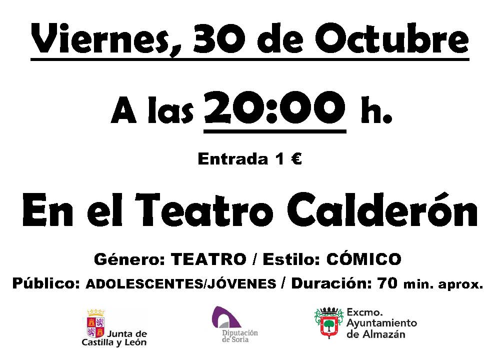 Viernes 30 de octubre a las 20:00 h., obra dentro de la programación en Almazán de los Circuitos Escénicos de Castilla León para 2020 cumpliendo con las oportunas medidas de seguridad.
