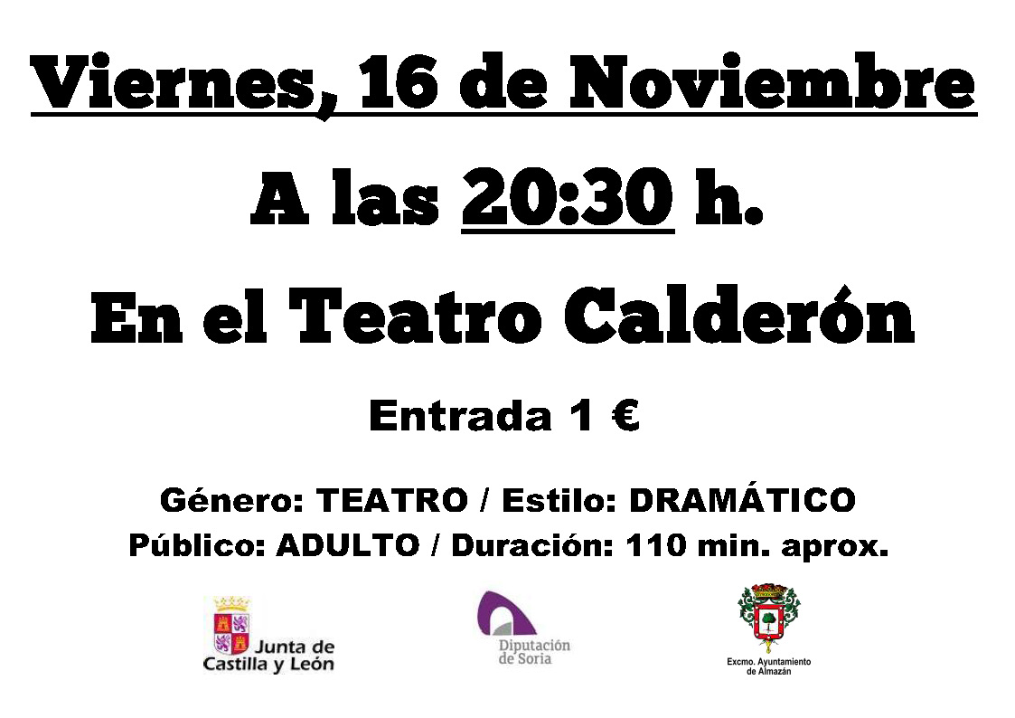 Viernes 16 de noviembre a las 20:30 h. en el Teatro Calderón, programado dentro de los Circuitos Escénicos de Castilla y León 2018. Precio de la entrada 1 €.