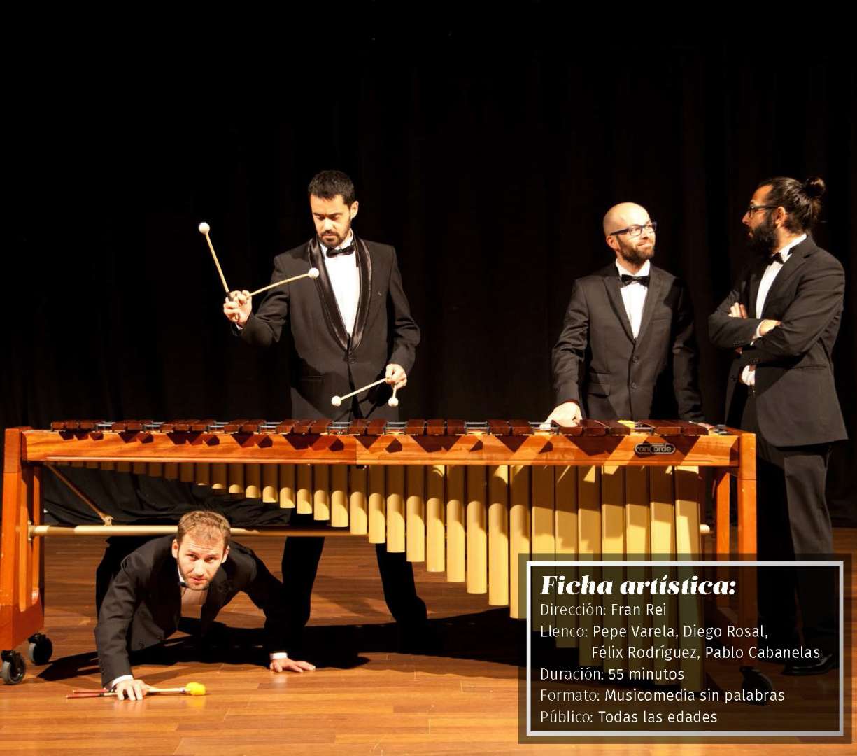 Cuatro actores-músicos con amplia formación musical y experiencia escénica protagonizan este show que gira en torno a una marimba y la dificultad de cuatro músicos para sacarle partido. Equívocos, pruebas, soluciones locas, … hasta que por fin consiguen ponerse de acuerdo y sacar un sonido increíble después de muchas risas.