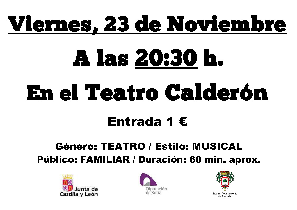 Viernes 23 de noviembre a las 20:30 h. en el Teatro Calderón, programado dentro de los Circuitos Escénicos de Castilla y León 2018. Precio de la entrada 1 €.