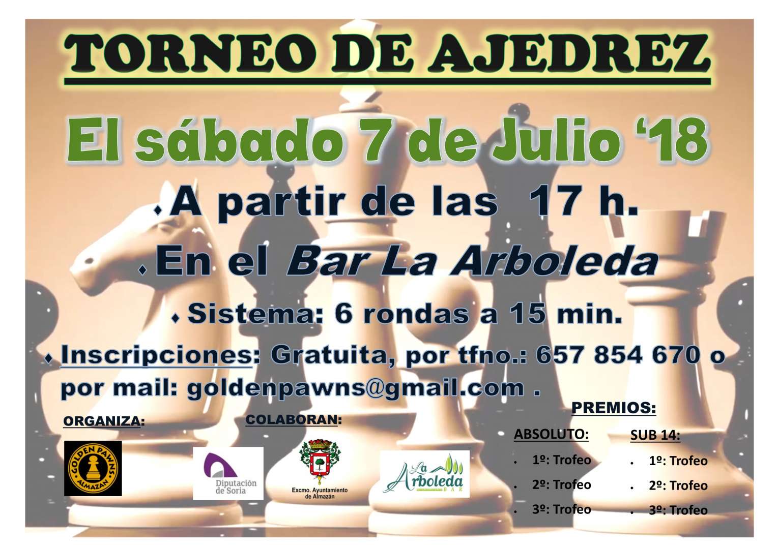 Sábado 7 de julio en el Bar de la Arboleda a partir de las 17 h. Sistema de 6 rondas a 15 min.