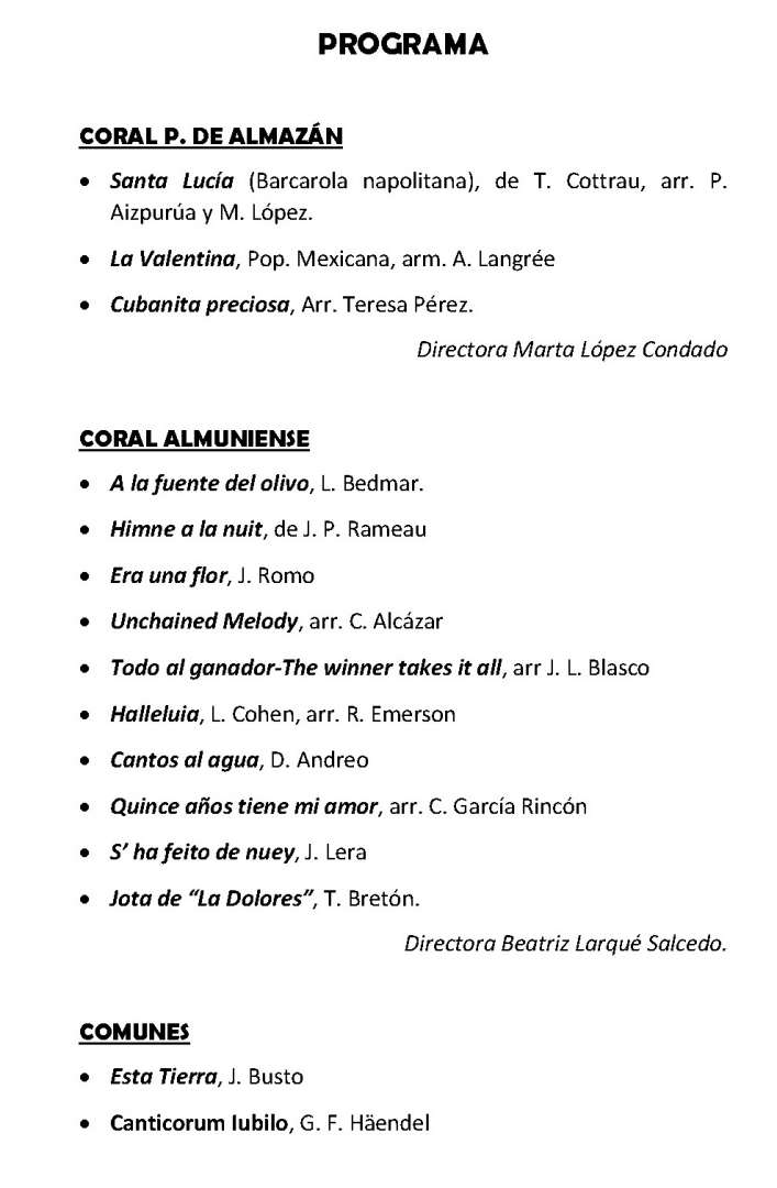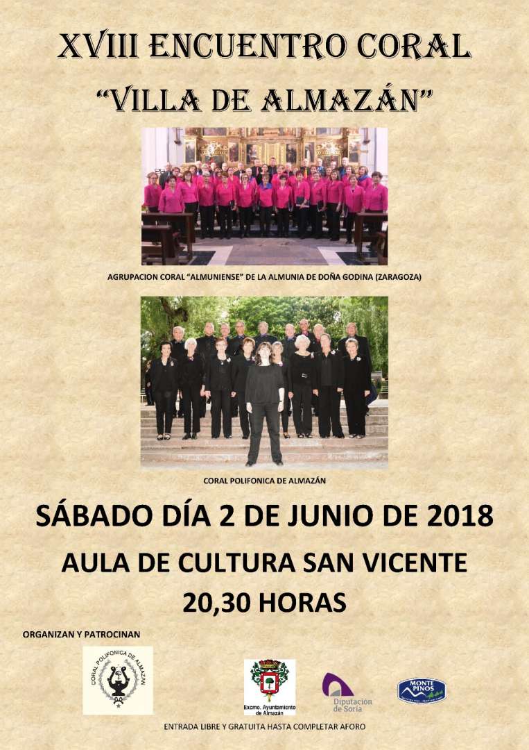 Este sábado 2 de junio a las 20:30 h. en el Aula de Cultura San Vicente, actuación de la Coral Almuniense y la Polifónica de Almazán.