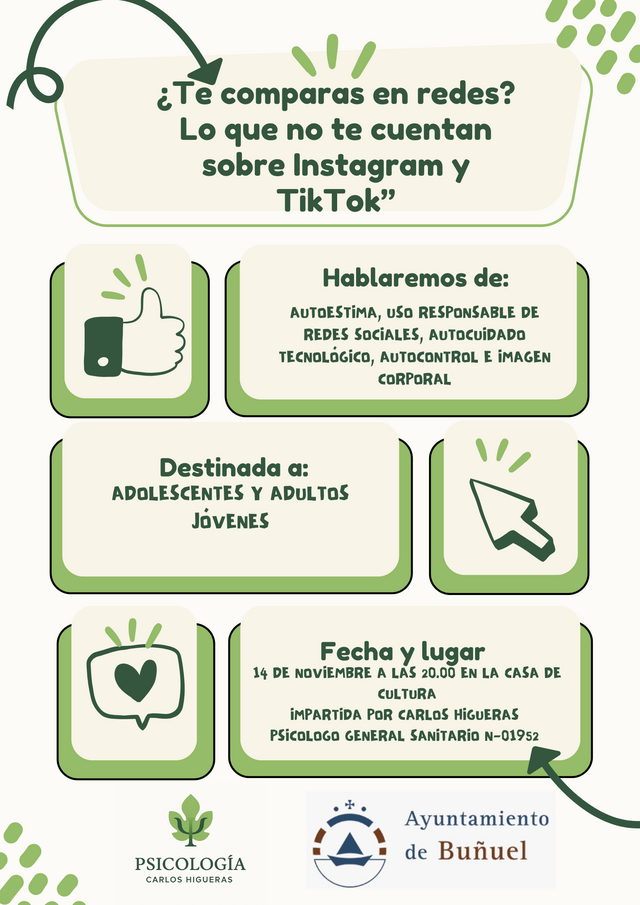 CHARLA "REDES SOCIALES, AUTOESTIMA Y COMPARACIÓN. CÓMO PROTEGER TU SALUD MENTAL" VIERNES 14NOV 20:00H