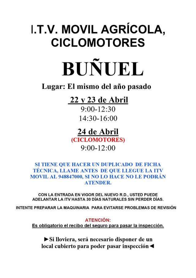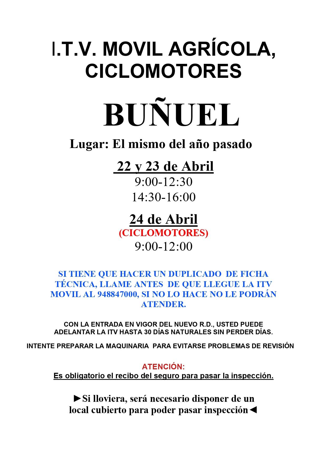 I.T.V. MÓVIL AGRÍCOLA CICLOMOTORES 22-23 y 24 DE ABRIL
