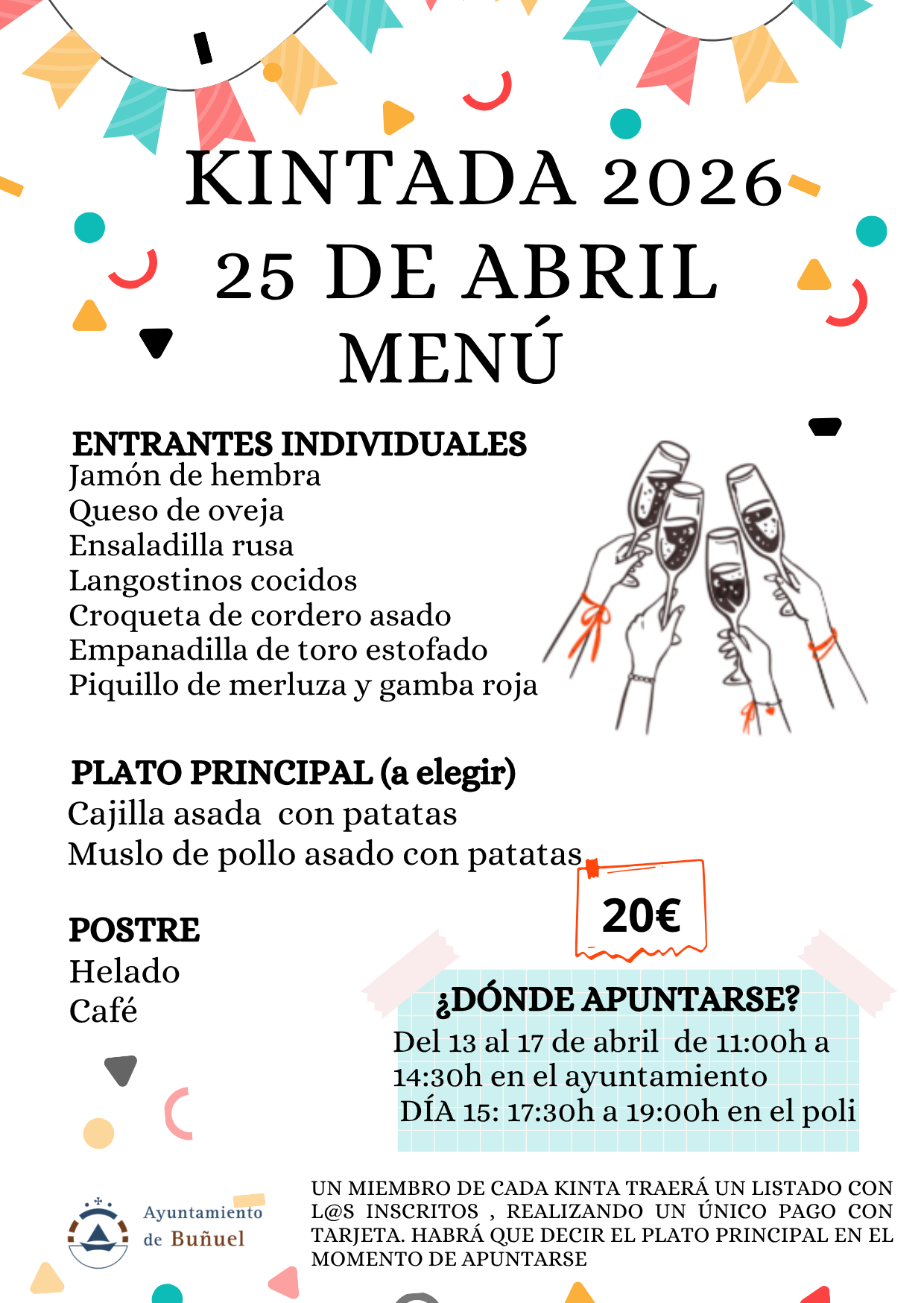 MENÚ E INSCRIPCIONES KINTADA 2026