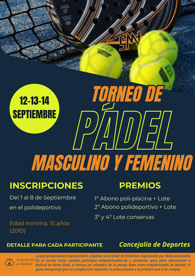 TORNEO DE PÁDEL ADULTO MASCULINO Y FEMENINO 12-13-14 SEPTIEMBRE