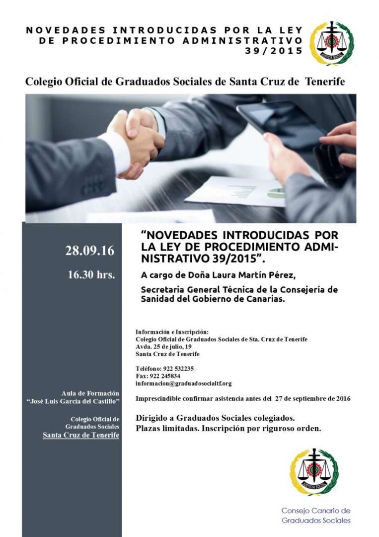 Colegio Oficial de Graduados Sociales Santa Cruz de Tenerife Dirigido a Graduados Sociales colegiados. Plazas limitada.