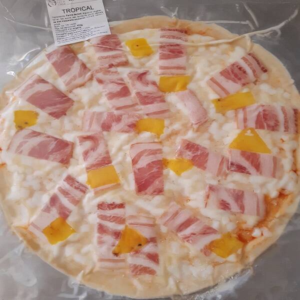 Ingredients: Farnina de blat, aigua, oli vegetal, llevat, llet, sucre, sal, farina de panis, sémola de blat, mozzarella, emmental, tomata, bacon i pinya