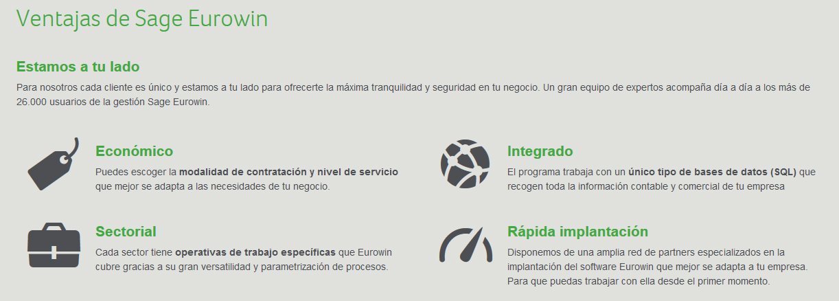 Cada sector empresarial tiene particularidades en su operativa de trabajo. La gestión integrada Sage Eurowin es una solución completa y versátil que adapta sus funcionalidades, para cubrir los procesos de gestión típicos de cada sector: industria, comercio, restauración, servicios, etc.