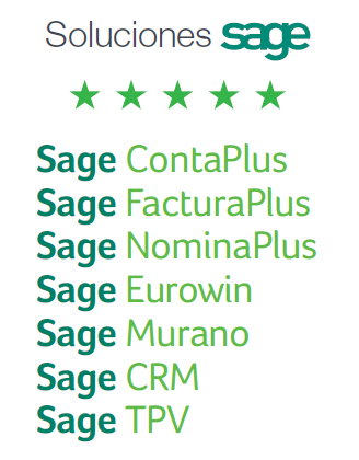 | SAGE CONTAPLUS SAGE FACTURAPLUS SAGE NOMINAPLUS SAGE EUROWIN SAGE MURANO SAGE CRM SAGE TPV |