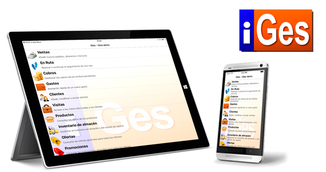 iGes es una aplicación de autoventa, preventa y facturación diseñada para PC y dispositivos móviles destinados a realizar pedidos, albaranes, facturas, introducción de visitas, itinerarios de seguimiento, cargos de gestión, gastos, etc.